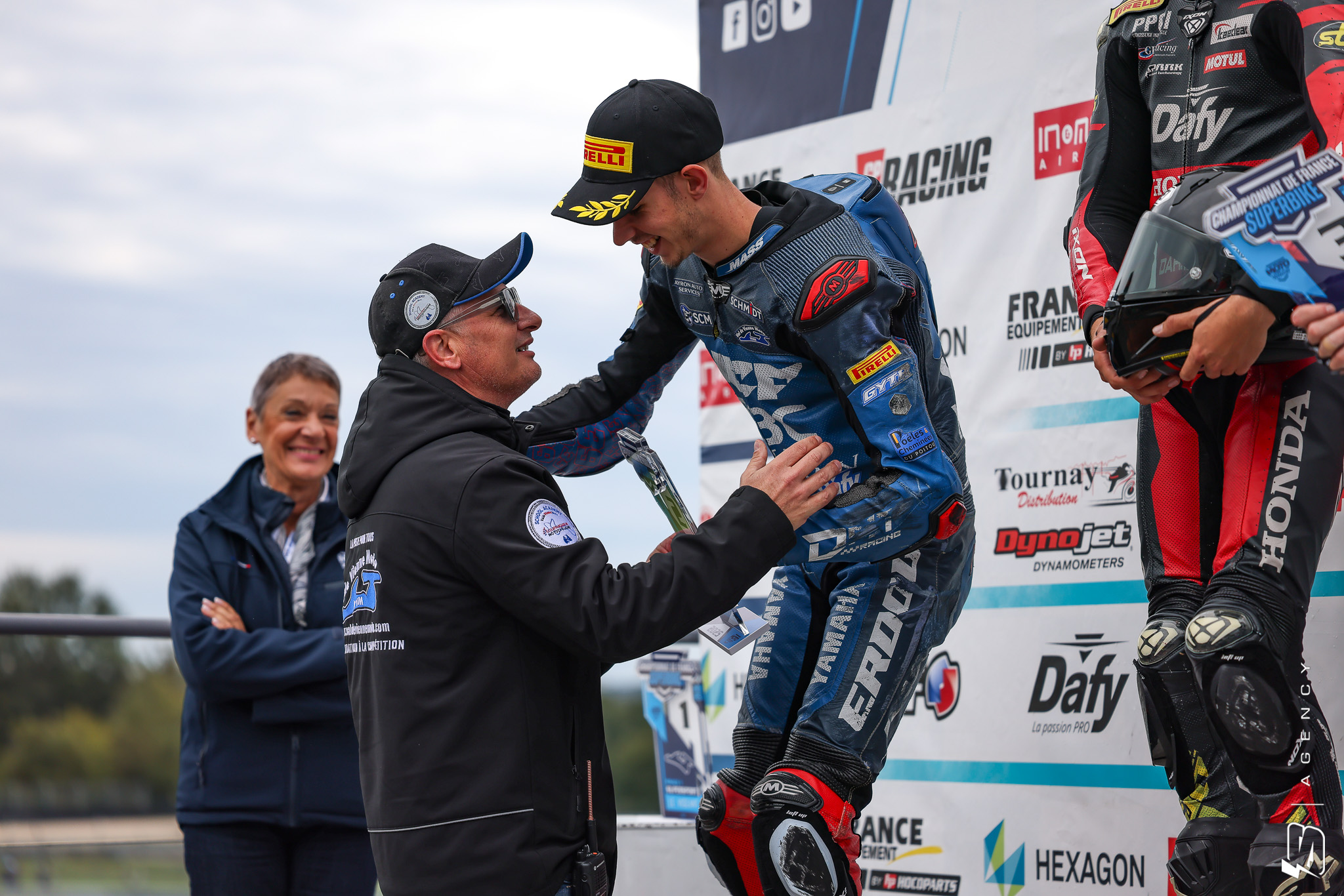 Jouer un titre à domicile est une expérience unique, mais le vivre au circuit du Vigeant, entouré de ma famille, de mes amis et de mes partenaires, a rendu ce moment tout simplement inoubliable. En tant que licencié du moto-club basé sur ce tracé, la pression était immense, mais l’énergie de mes proches a fait la différence.