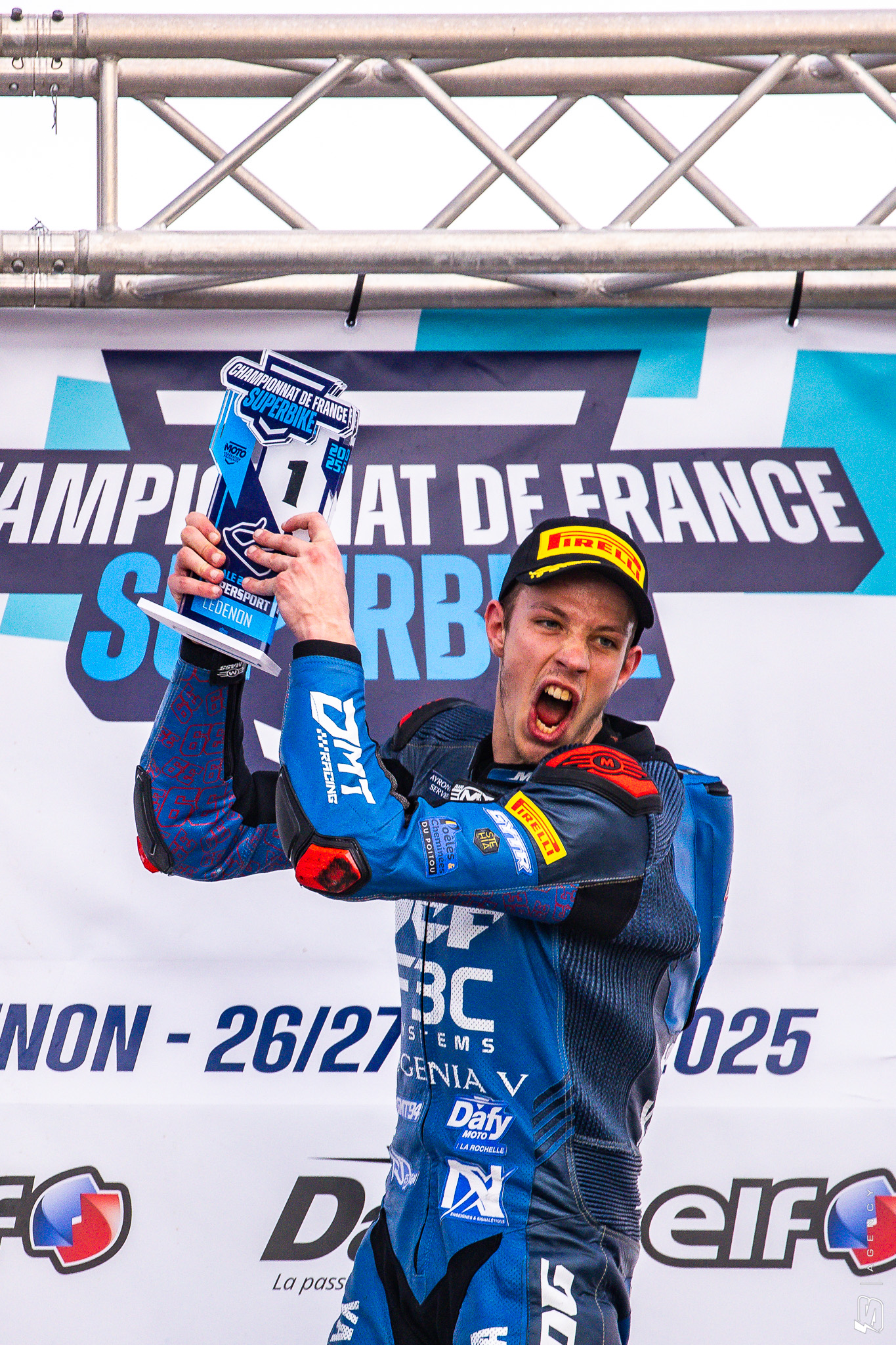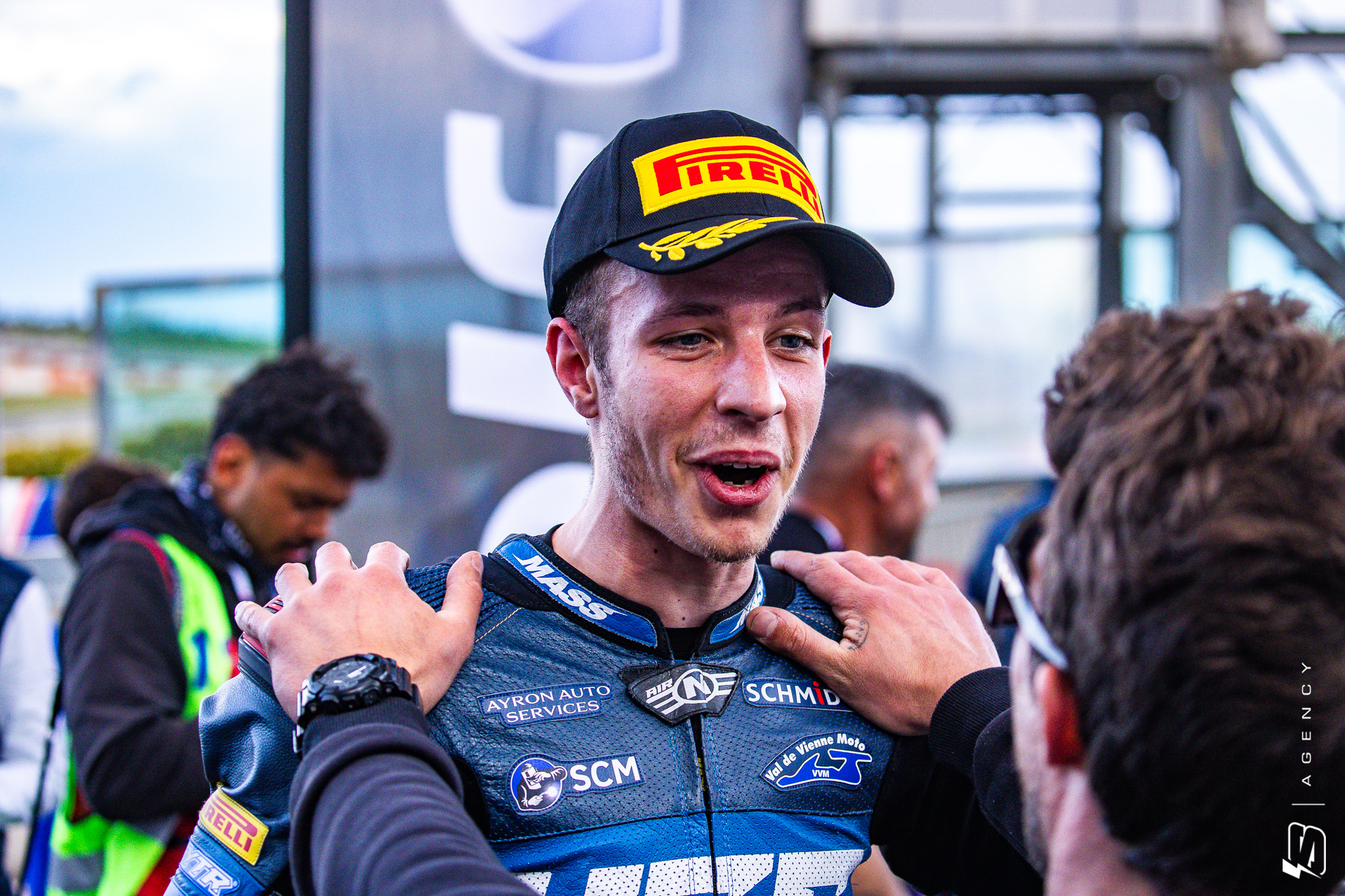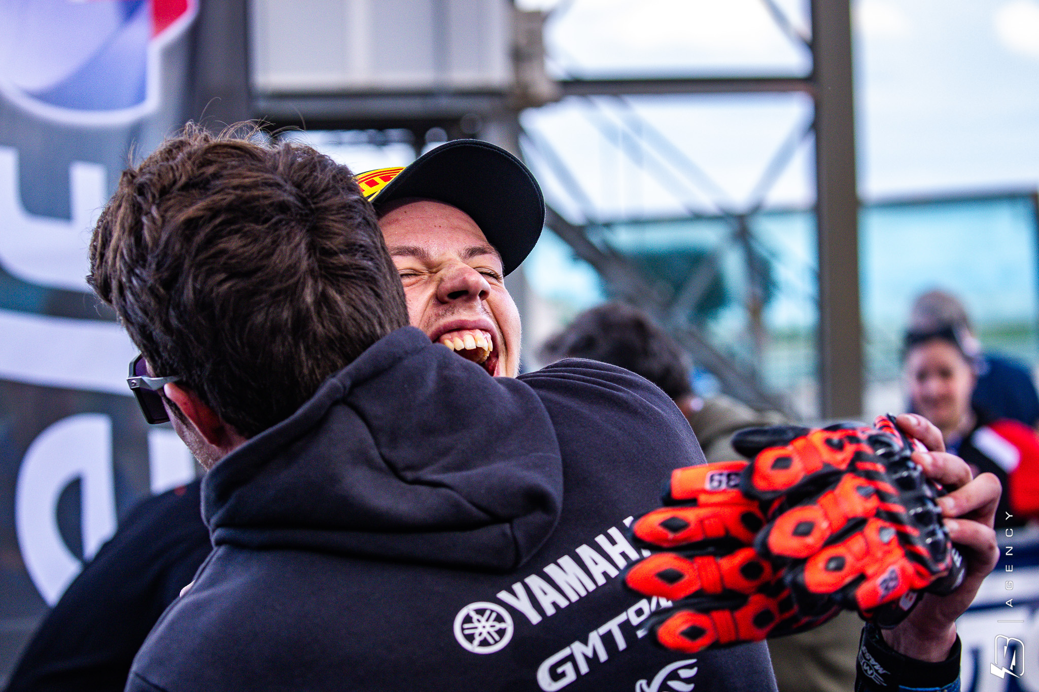 Le dimanche, sur une piste cette fois totalement sèche, la bataille a été d’une intensité rare, j’ai livré une lutte acharnée pendant 20 tours. Grâce à une bonne gestion de ma course, je parviens à l’emporter, décrochant ainsi ma toute première victoire de la saison !