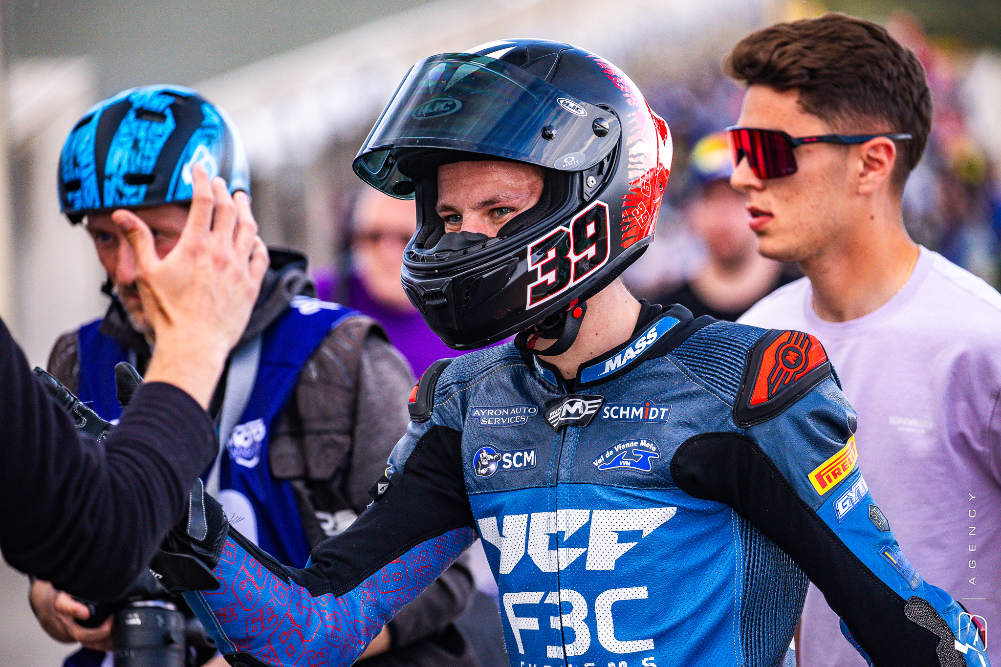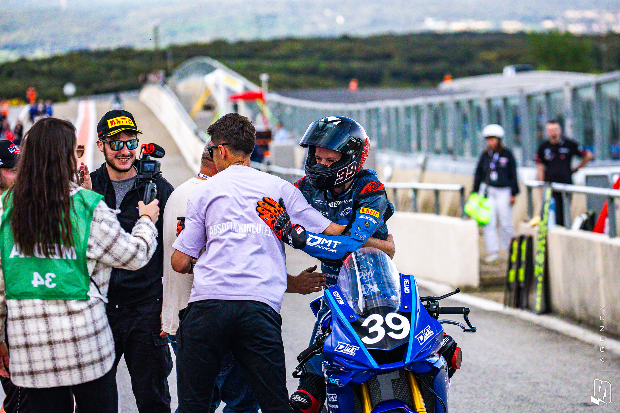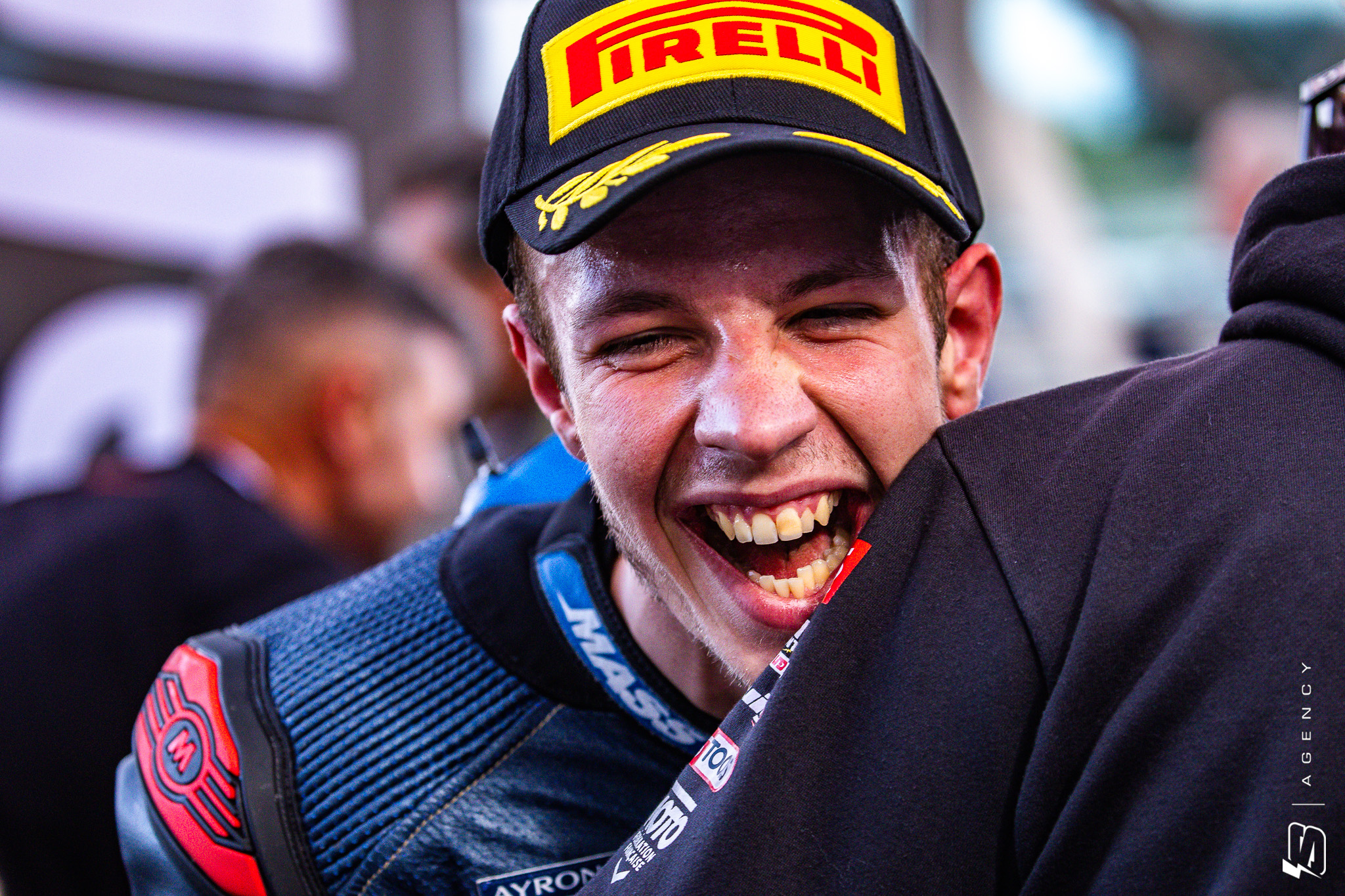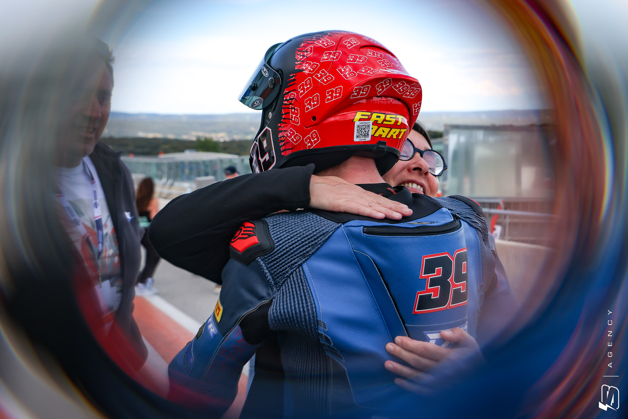 Le dimanche, sur une piste cette fois totalement sèche, la bataille a été d’une intensité rare, j’ai livré une lutte acharnée pendant 20 tours. Grâce à une bonne gestion de ma course, je parviens à l’emporter, décrochant ainsi ma toute première victoire de la saison !
